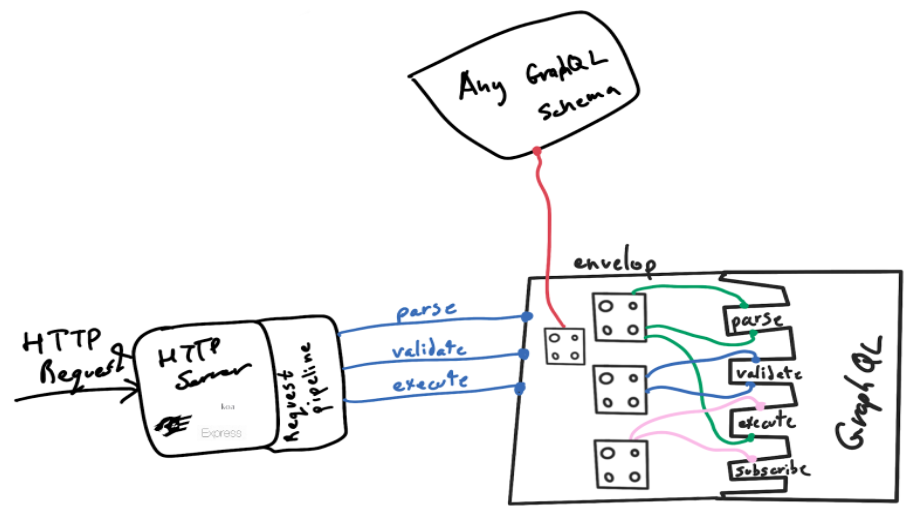 Envelop is schema-agnostic and HTTP-server agnostic, meaning that it can be integrated with any kind of setup. We do not aim to provide a complete, vendor-locking suite, since we believe that the developer should be able to adjust any part of their application, at any time, without major implications.